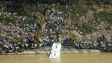Toàn cảnh trục vớt chiếc xe khách bị lũ cuốn